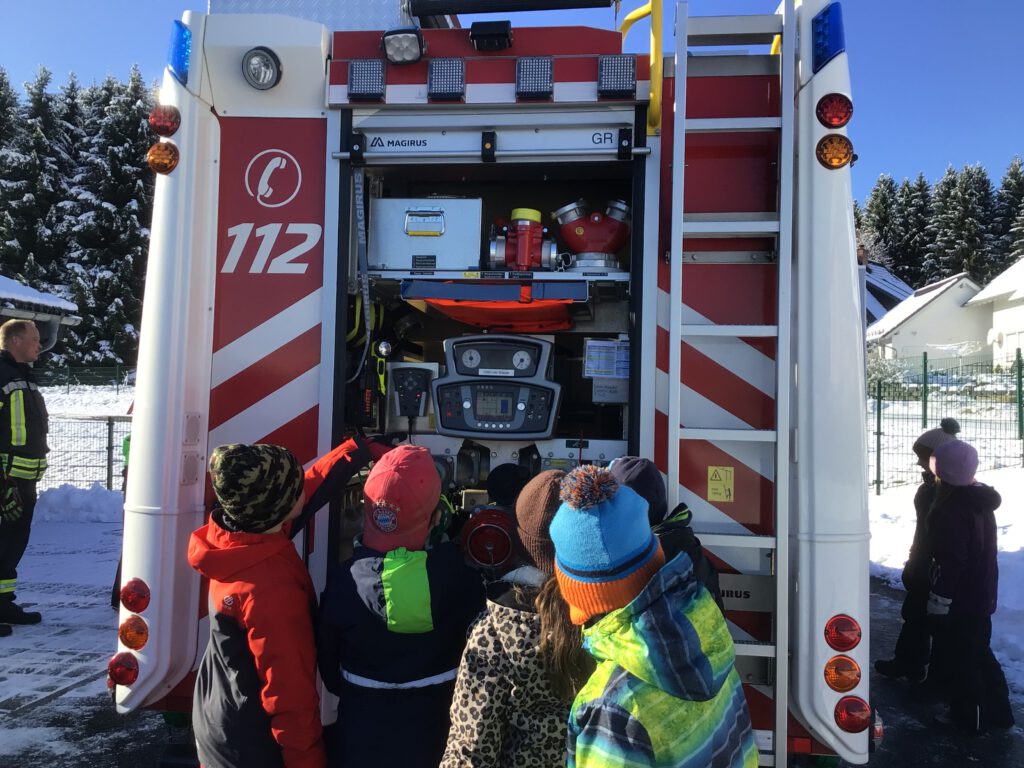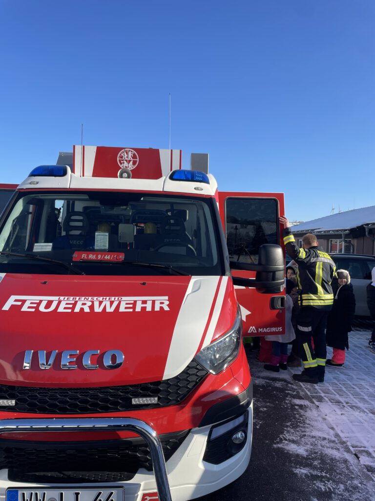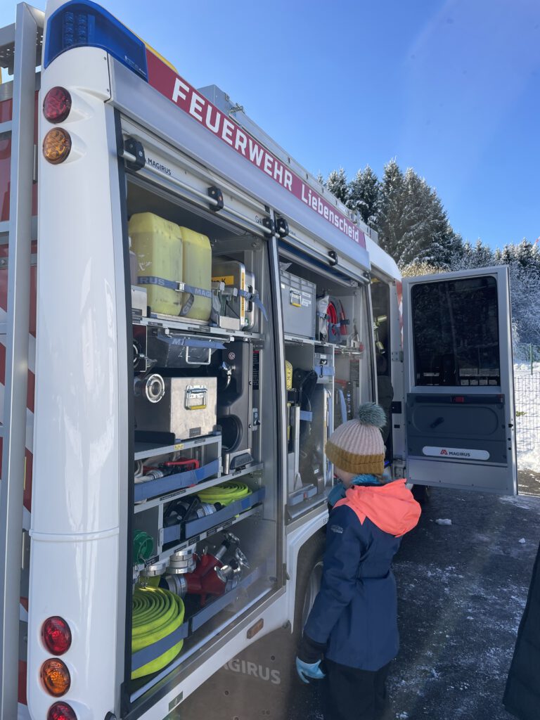 Die Kinder durften das Feuerwehrauto von innen und außen genau erkunden, Fragen stellen und viele spannende Details aus dem Feuerwehralltag erfahren. Besonders beeindruckt waren sie von der Ausrüstung, den technischen Geräten und den zahlreichen Möglichkeiten, die ein Einsatzfahrzeug bietet.